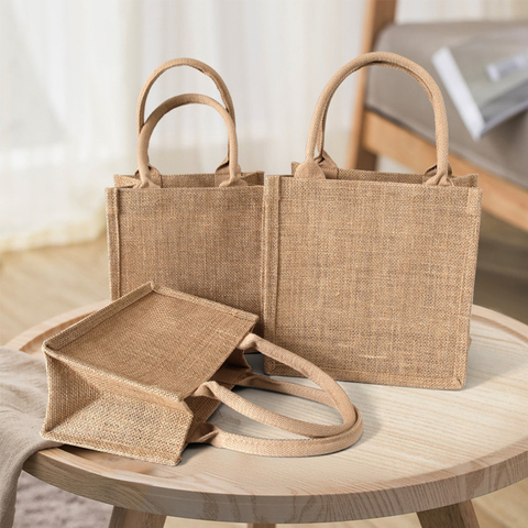 Bolsas de compras de comestibles naturales personalizadas, bolso de yute original reutilizable y ecológico, fabricante de bolsas de yute